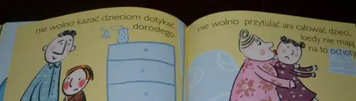 Mocną stroną książeczki są proste ilustracje i znikoma ilość tekstu – to nie ma być wykład tylko rozmowa w miłej atmosferze.